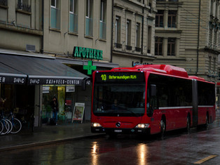 A világ legboldogabb országának fővárosa: Bern. A szakadó eső ellenére igyekeztem minél jobban körbesétálni a város egyes részeit. A közösség közlekedésben villamos, troli és busz vesz részt. A városi szolgáltató a Bernmobil. A villamosflotta kétféle Combinóból áll, valamint a régebbi Vevey-tramból.
