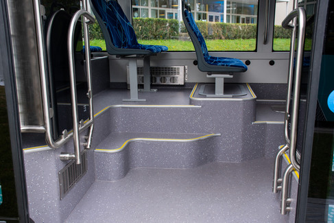 A kompozit vázból kifolyólag minden kábelezést fenékvázon, beltér esetében pedig kábelcsatornákon kell vezetni, a letisztult belső összképet árnyalja a rengeteg konzol, kábelcsatorna, csavarozott burkolat, és megrendelő-specifikus IT-szekrény (mellső tengely bal kerékdobon). Az extraszéles közlekedőfolyosó a hátsó tengelynél még mindig egyedülálló, kár, hogy az dupla ülésezés mindkét oldalon ezt szűkíti valamelyest – másfeles ülésekkel érvényesül igazán, lásd a 2019-es demodarabot.