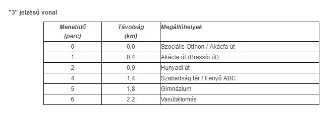 A 3-as járat csak munkanapokon közlekedik, míg a többi három járat csak tanítási napokon. Tehát a hétvége üzemszünet, de egyébként is javarészt csak iskolások használják a járatokat. A menetrend a megállókban „volános stílusban” van kihelyezve, viszont a busz mindenféle jelzés/járatszám nélkül közlekedik.
