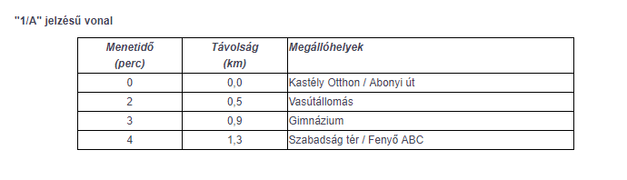 A menetrend 2011. október 24-étől az egyes járatokon: